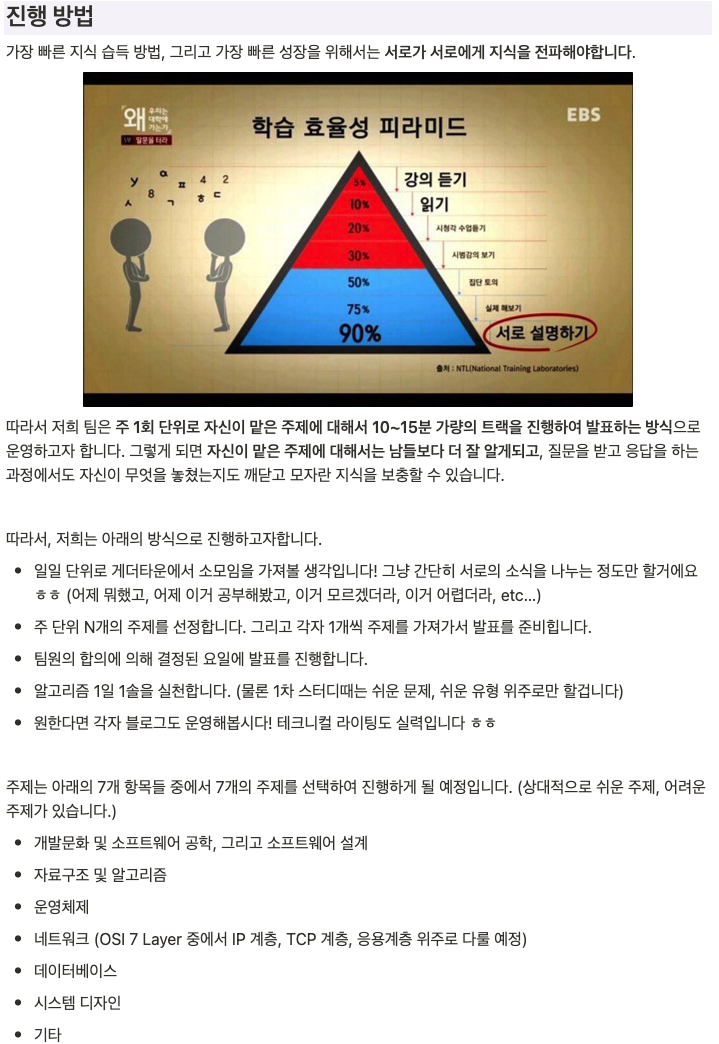 결론적으로는, 아래의 방침대로 스터디를 운영해보기로 결정했습니다.